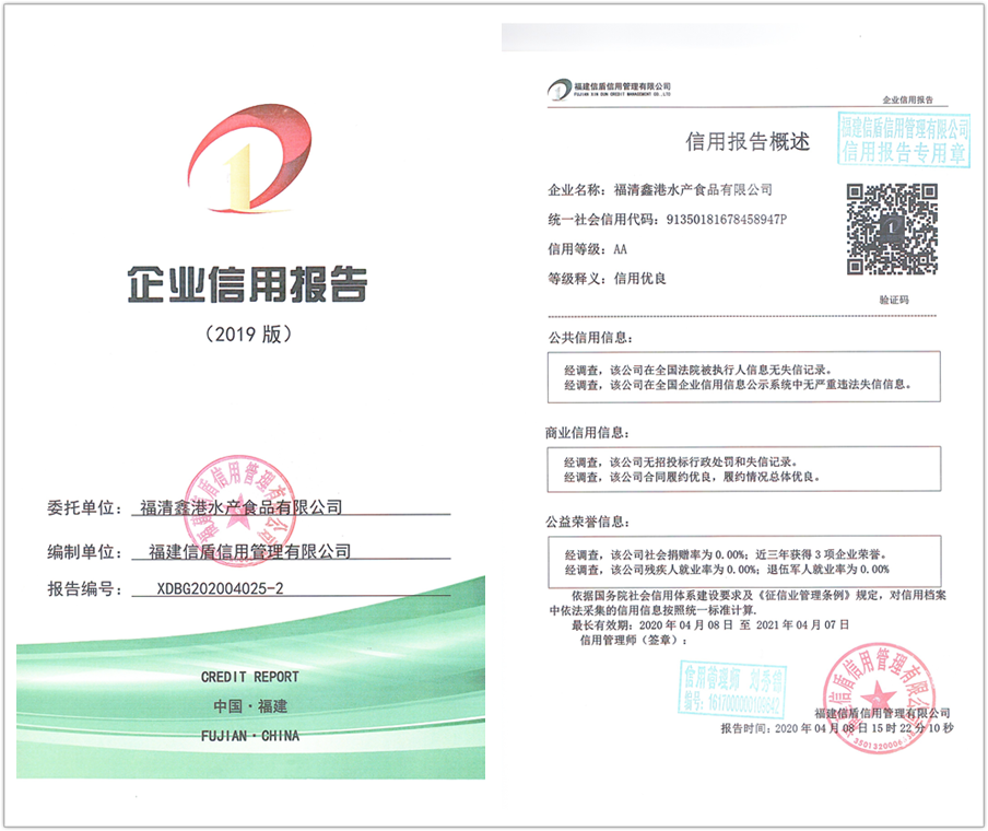 福清鑫港水產(chǎn)食品有限公司2020-2