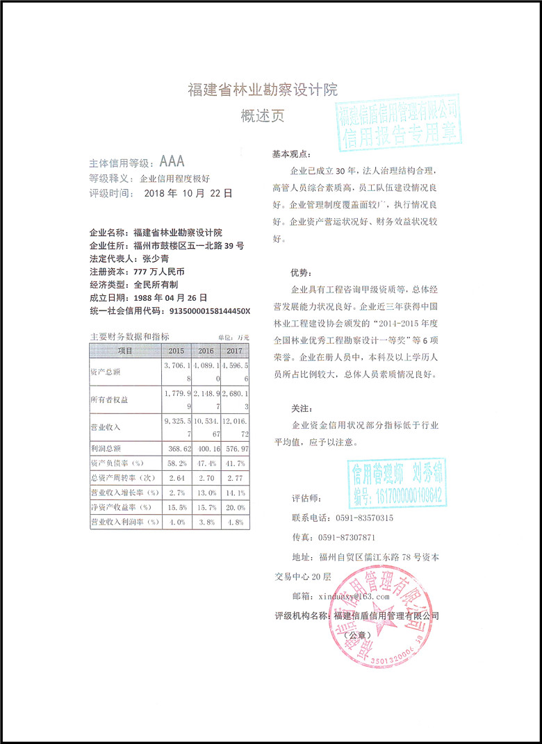福建省林業(yè)勘察設(shè)計(jì)院2018