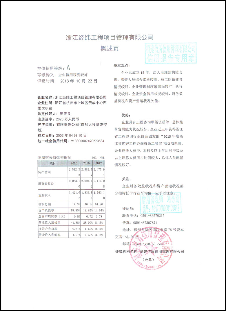 浙江經(jīng)緯工程項目管理有限公司2018