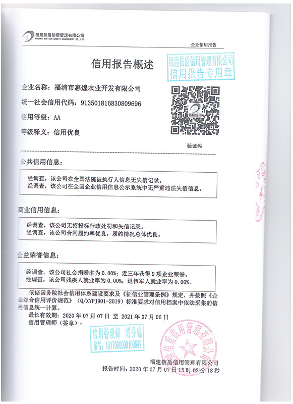 福清市惠煌農業開發有限公司2020-2