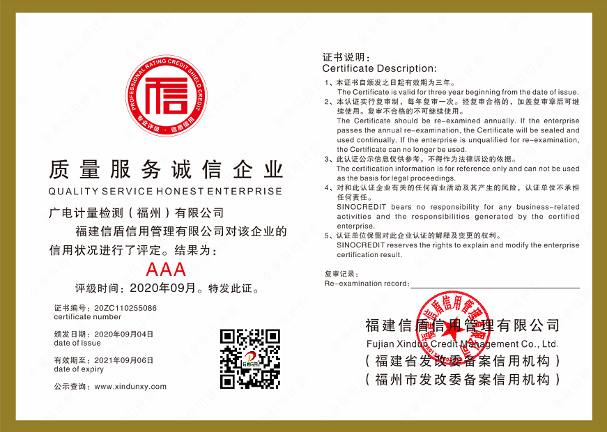 廣電計(jì)量檢測(cè)(福州)有限公司2020