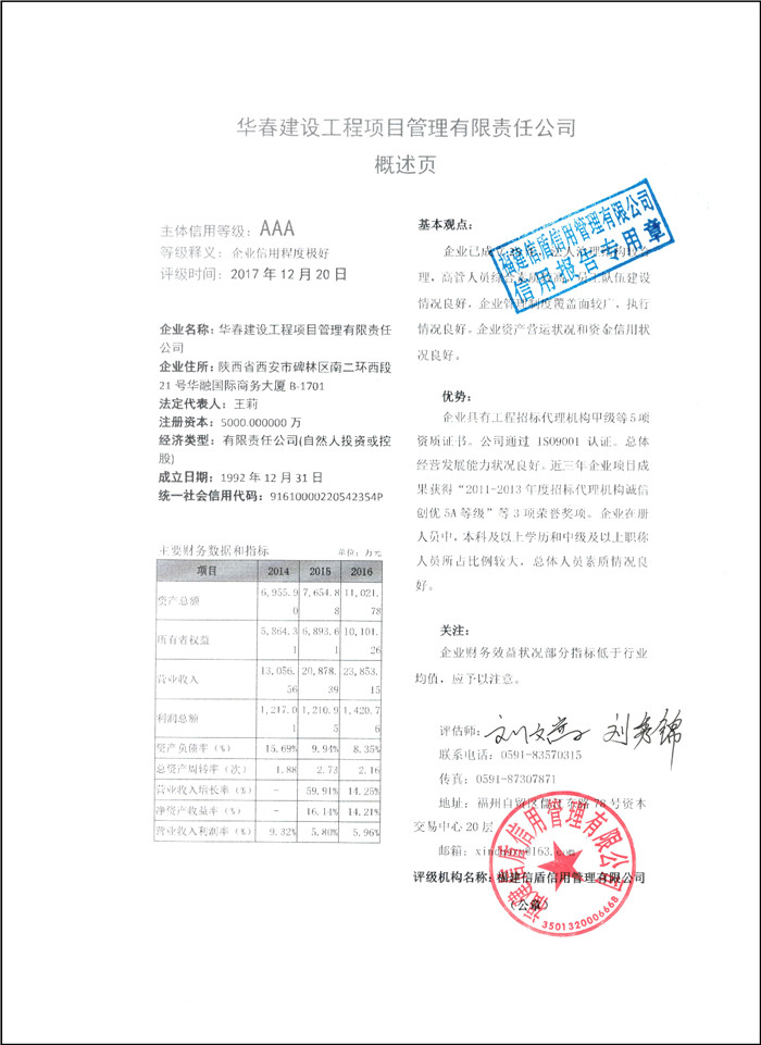 華春建設(shè)工程項(xiàng)目管理有限責(zé)任公司 XDPJ201712238