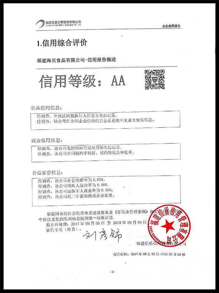 福建海貝食品有限公司 XDBG201709010