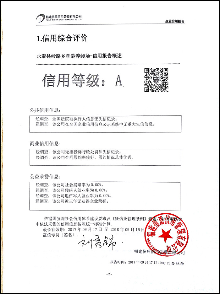 永泰縣嶺路鄉孝齡養鰻場 XDBG201709023