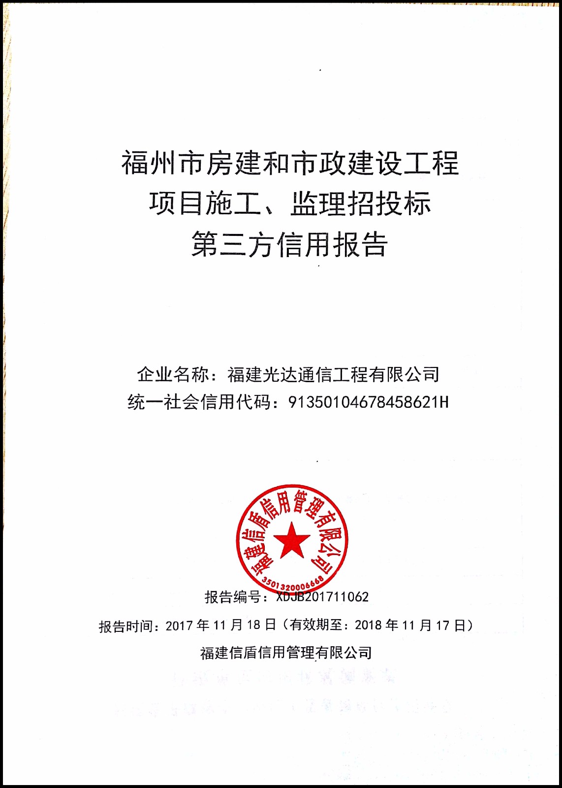 福建光達通信工程有限公司 XDJB201711062