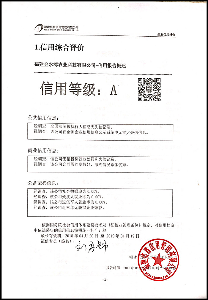 福建金水灣農業(yè)科技有限公司 XDBG201804020
