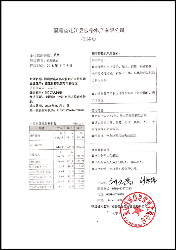 福建省連江縣宏裕水產(chǎn)有限公司 XDPJ201803160