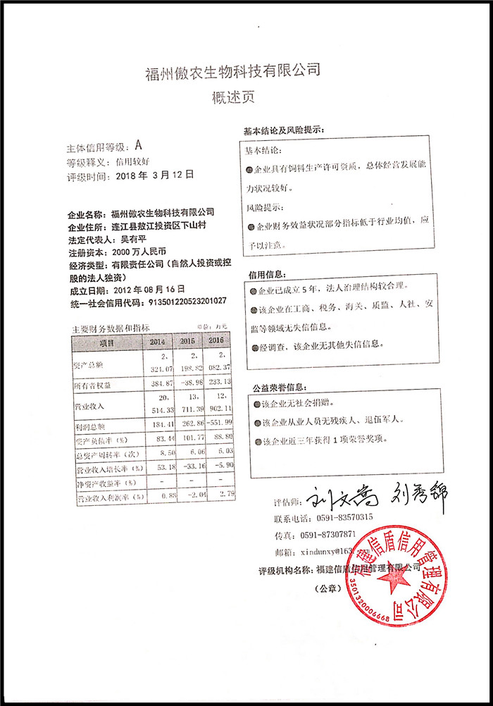 福州傲農(nóng)生物科技有限公司 XDPJ201803180