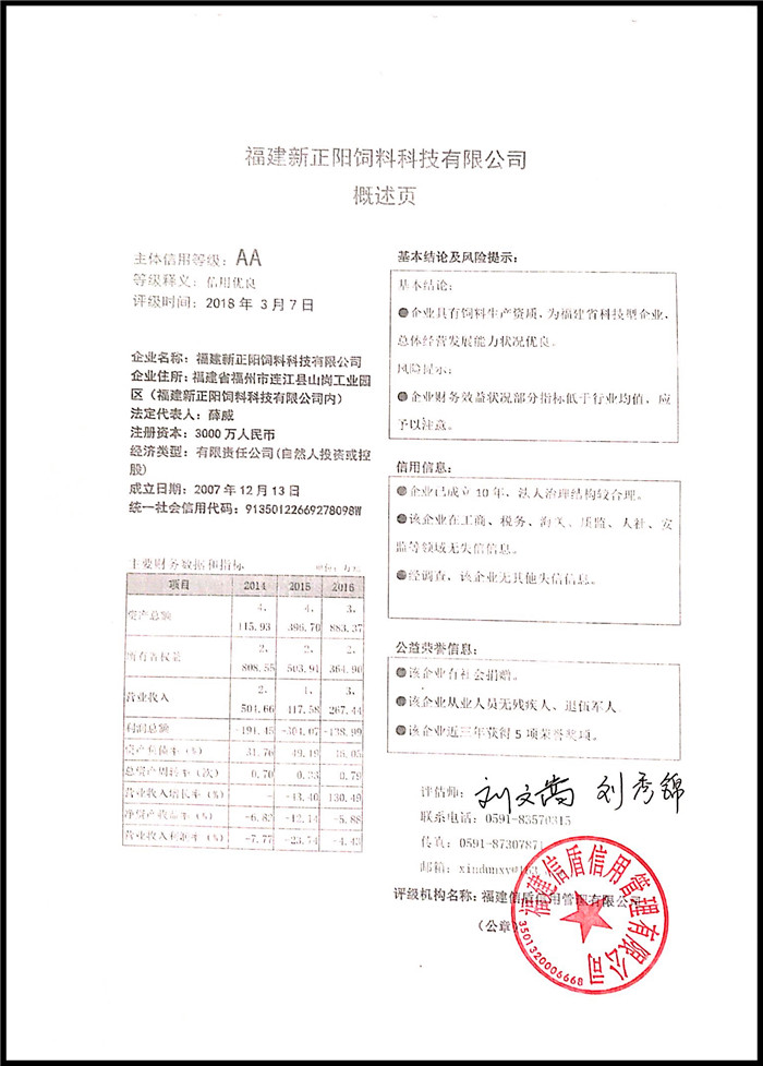 福建新正陽(yáng)飼料科技有限公司 XDPJ201803203