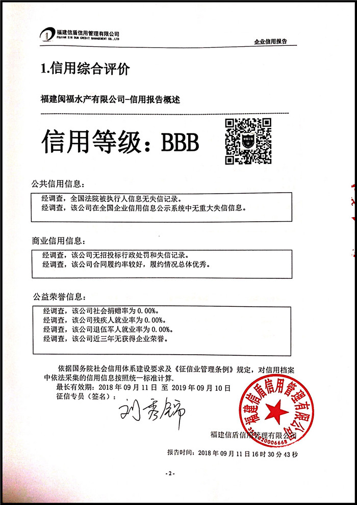 福建閩福水產(chǎn)有限公司 XDBD201809019