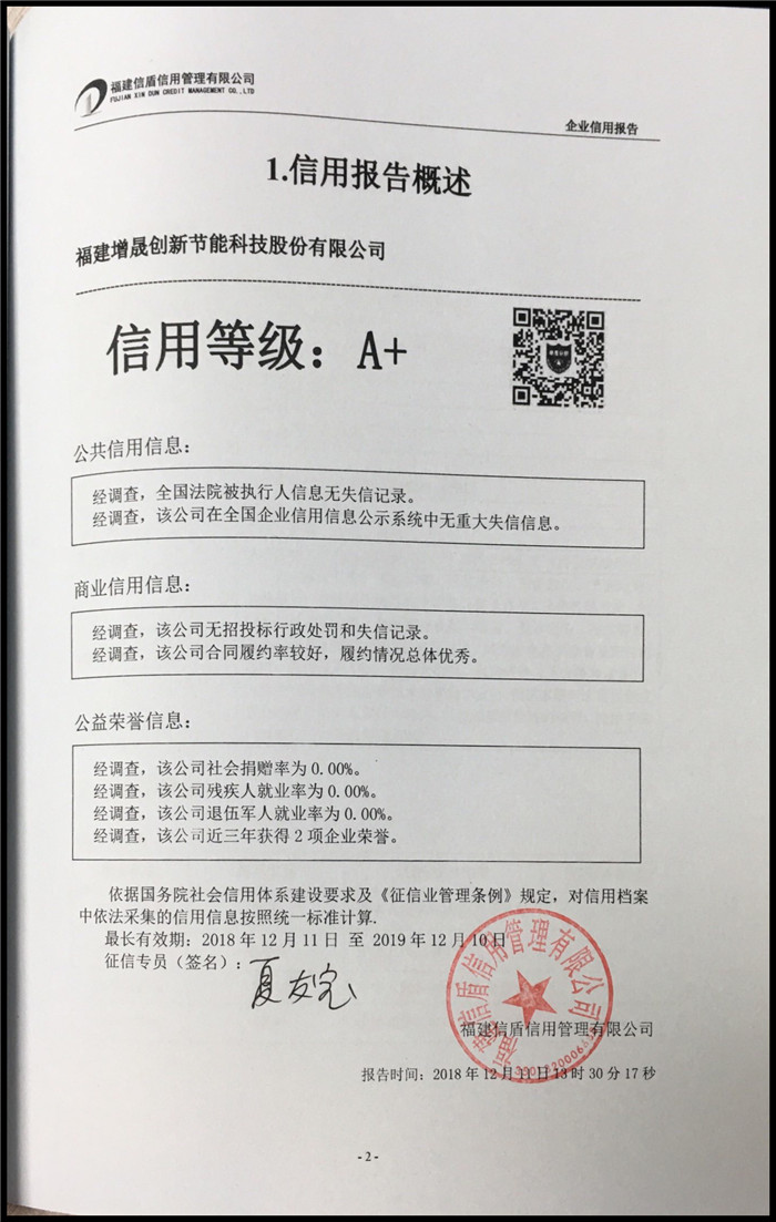 福建增晟創(chuàng)新節(jié)能科技股份有限公司 XDBG201812140