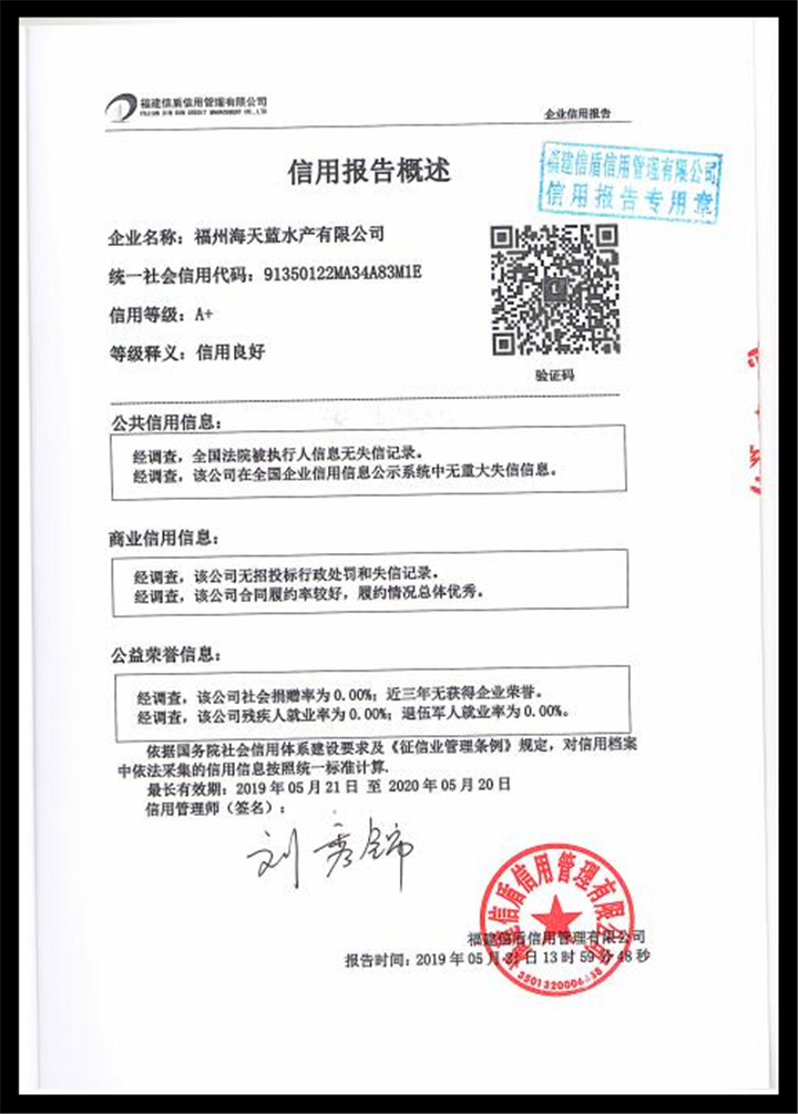 福州海天藍(lán)水產(chǎn)有限公司2019