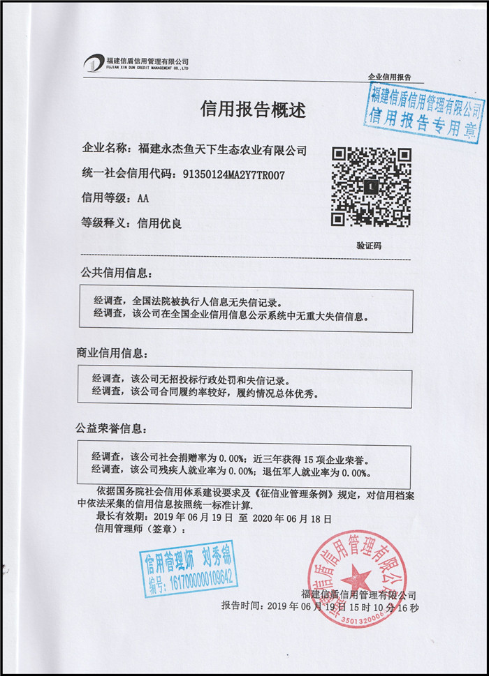 福建永杰魚(yú)天下生態(tài)農(nóng)業(yè)有限公司2019