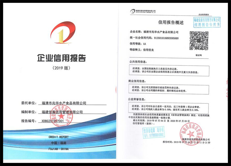 福清市兆華水產食品有限公司2019